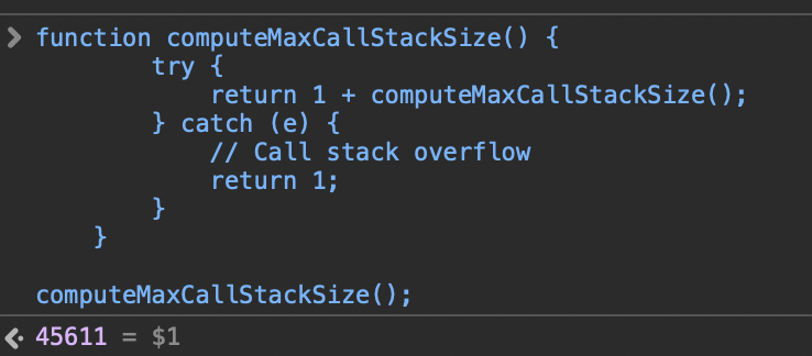 그렇다면 호출 가능한 최대 콜스택은 얼마나 될까?
