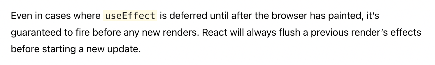 그리고 useLayoutEffect 내부의 업데이트를 일으키는 변경사항 역시 브라우저의 paint 이전에 동기적으로 반영된다.