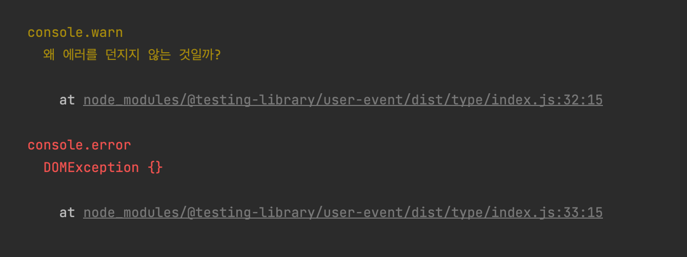 예를 들어 국가 코드 선택(select)과 전화번호 input이 같은 label 안에 존재하는 경우 userEvent.type이 동작하지 않고 있었습니다.