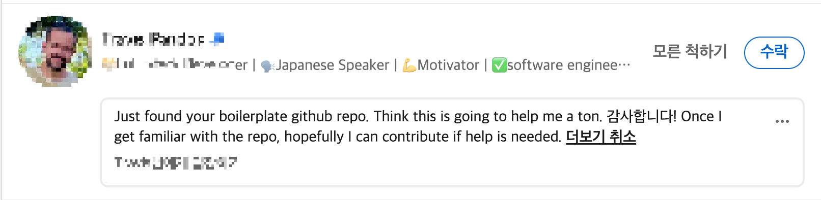 단순히 issue 생성이나 PR뿐 아니라 타인의 issue를 보고 내 대신 더 좋은 해결방법이나 아예 다른 관점에서의 해결책을 제시해 주시는 분들도 많았는데 이분들이 내게 큰 동기부여가 되었다.