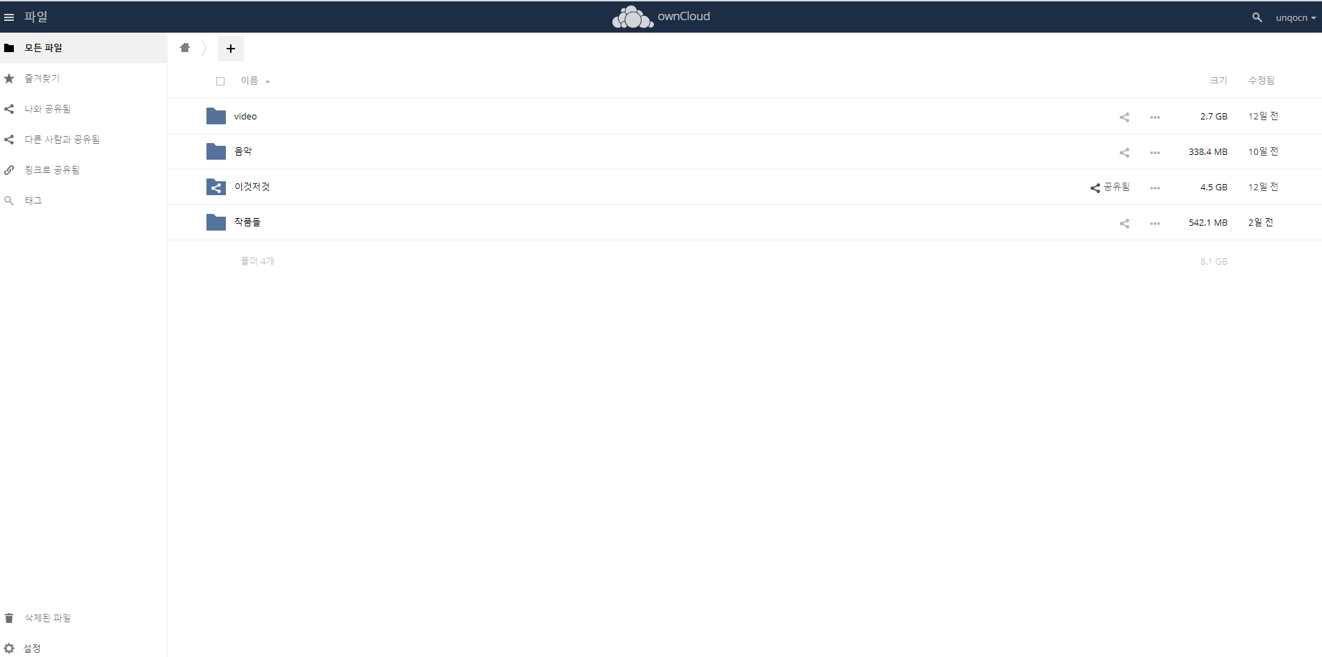 위에서 설정한 아이디와 비밀번호를 입력하고 접속하면, 마음대로 사용할 수 있는 cloud storage가 생긴다.
