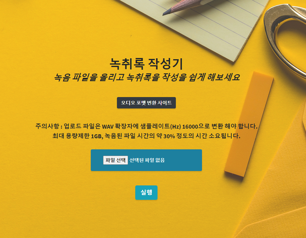 그 때문에 작년 5월에 남는 구글 크레딧도 소진할 겸, 구글 STT(Speech to Text)를 붙여 녹취록 작성을 돕는 웹을 만들어 지인분께 제공하기도 했었다. (그 분은 이제 녹취록 업무는 하고 계시지 않는다고 하더라...)
