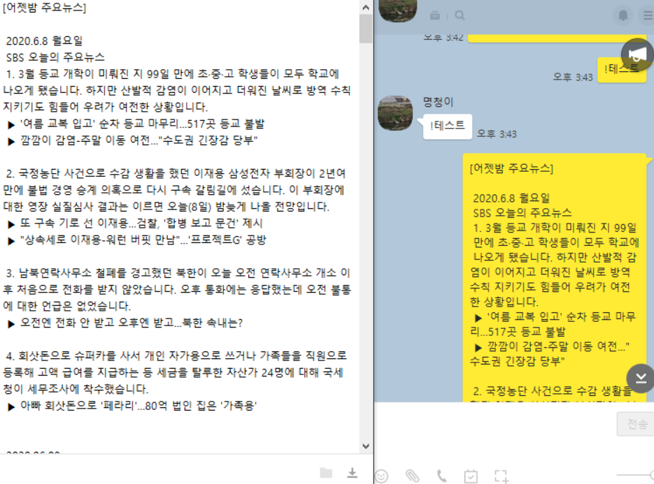 서버에서 뉴스 크롤링 후, 바로 카톡방으로 쏴주면 📲 얼마나 편할까?