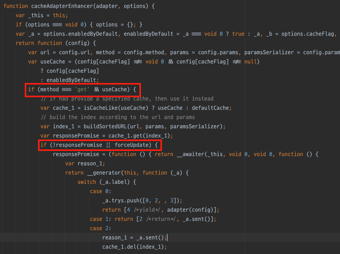cacheAdapterEnhancer 내부 로직을 보면, 요청에 대한 캐싱은 get에만 국한되는 것을 확인 할 수 있다.
