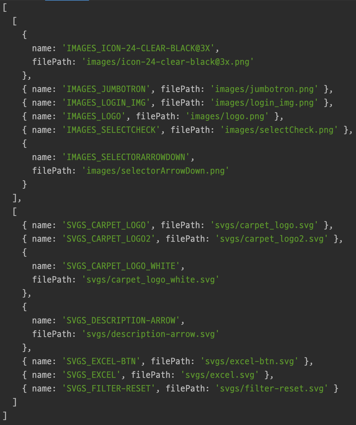 이제 사용시에는 assets을 참조하여 assets.LOGO 등의 방식으로 사용하면 간. 편. 하. 다.